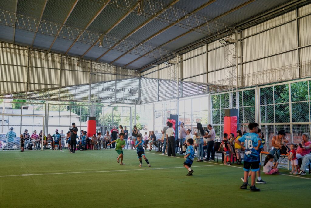 Se trata de un espacio recreativo ubicado en la chacra 49, que tuvo sus primeros cimientos ganando el Presupuesto Participativo en 2018. Decenas de niños y niñas podrán practicar deportes sin importar el clima, en un lugar seguro.